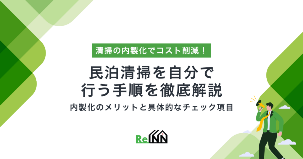 民泊運営において、清掃は宿泊者の満足度を左右する重要な業務です。多くの運営者が専門業者に清掃を委託していますが、規模や立地によっては自分で清掃を行うことでコストを削減できる可能性があります。 本記事では、民泊清掃の内製化を検討している運営... -